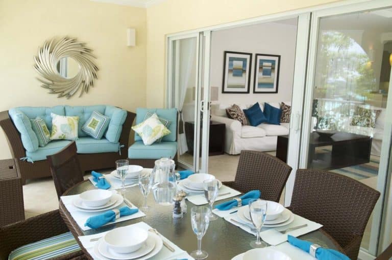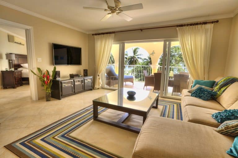 Sapphire Beach villa rentals feature an open plan living, dining, kitchen area, leading on to the balcony which overlooks the pools, beach and ocean beyond. The master bedroom (with an en-suite bathroom) also has direct access to the balcony, and is angled is such a way that you can lay on your bed and look straight out the ocean view! Bedroom 2 also has an en-suite bathroom, whilst Bedroom 3(in 3 bedroom villas) is next door to the hallway bathroom. All units are equipped with a full appliance package (washer/dryer included) and include superbly designed Italian kitchens and air-conditioning as well as ceiling fans in all rooms. The finishes are luxurious and show top quality craftsmanship including the granite counter tops and porcelain floor tiles. Most importantly the ocean view from every unit at Sapphire Beach is incredible. The property includes shared amenities such as two large kidney shaped swimming pools (170ft of pools) with boardwalk bridges leading to the beach, an elevator, gated and private driveway and parking facilities and .a state-of-the-art on-site gym with some of the latest fitness equipment and machinery. All Prices Quoted in US Dollars.