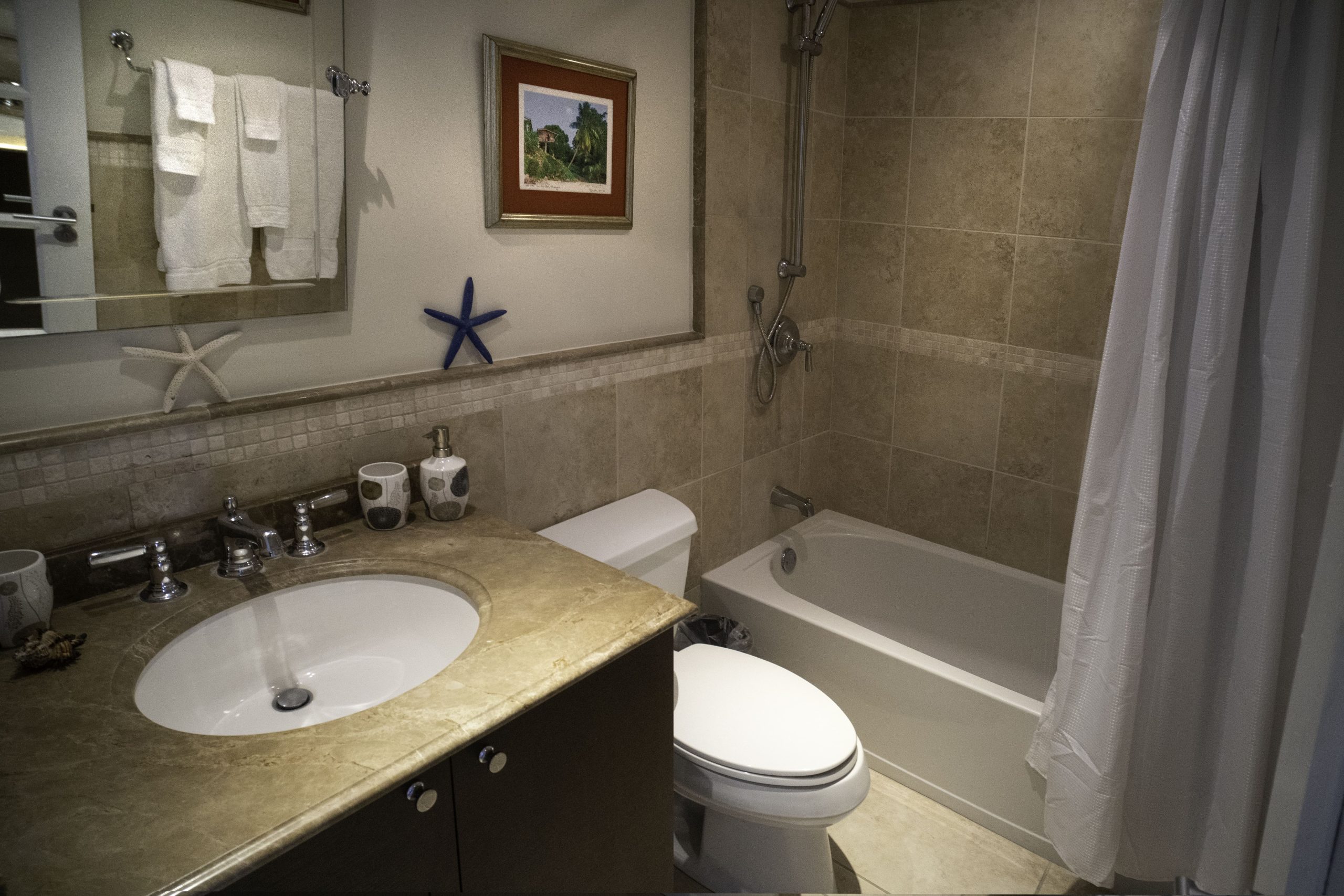 Sapphire Beach 503 is a luxury three bedroom vacation rental, with air-conditioning and ceiling fans throughout. The finishes are luxurious and show top quality craftsmanship including the granite counter tops and porcelain floor tiles.